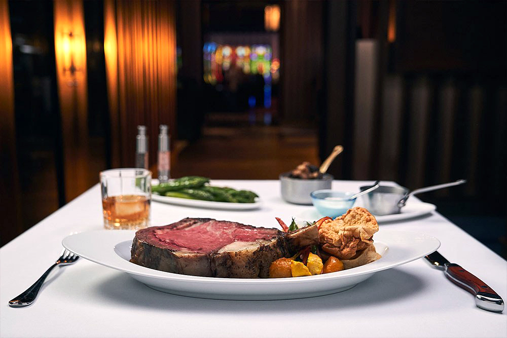 Slow roasted 14 oz Prime Rib – Mashed potatoes, Yorkshire pudding, and fresh seasonal vegetables.